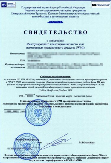 Оформляем свидетельство о присвоении кода WMI для производителей, сборщиков, доработчиков и кузовостроителей ТС